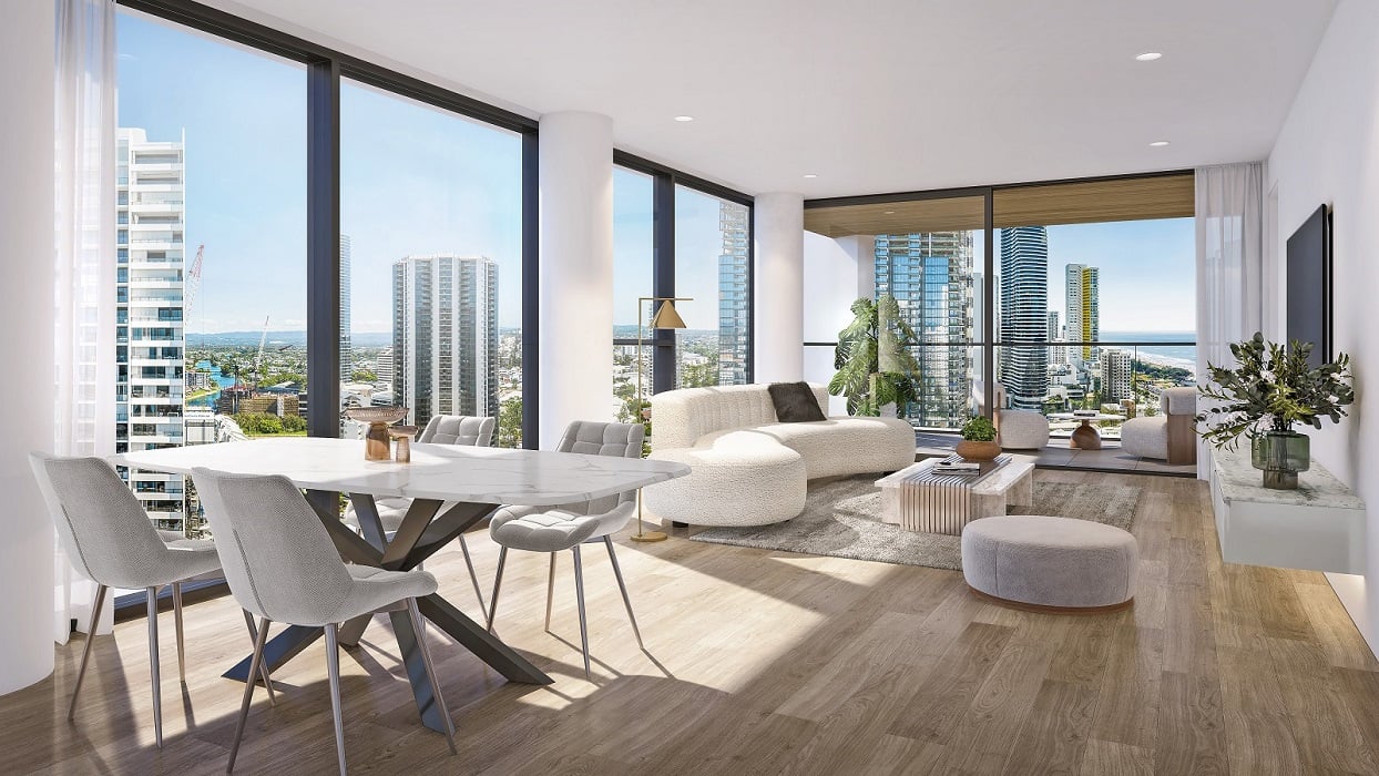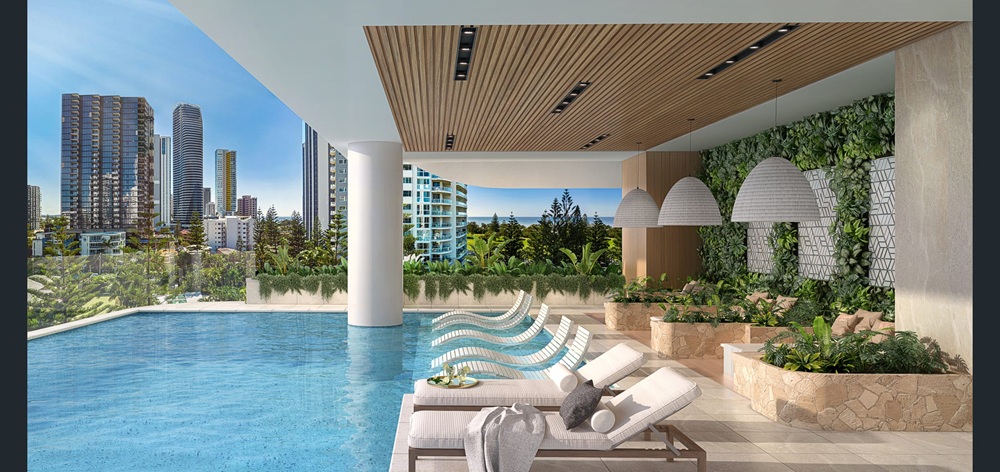 Located across from the beach and Kurrawa Park in Broadbeach, this new off the plan development will have dramatic views of the Pacific Ocean, perfectly nestled in Broadbeach’s culinary and retail district, a perfect blend of relaxed beachside and city living comprising of 2 bed plus study and 3 bed plus study apartments, only 4 per floor over 23 levels. High-end finishes, kitchen has integrated double door Fridge, Dishwasher, wine fridge in walk in butlers pantry, wall oven and microwave, Miele appliances. Ducted and Zoned air conditioning, double glazed windows. Bathrooms finishes have wall to celling tiles bath and separate shower. Just a short stroll to the centre of Broadbeach with its bustling cafes and restaurants, the Star Casino, conference centre, Pacific fair shopping centre.